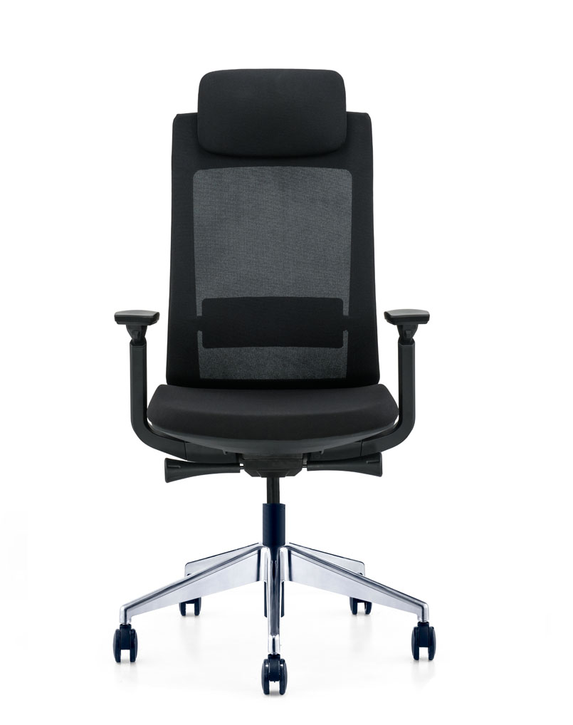 Executive Office Chair with black frame, mesh back, and fabric seat.