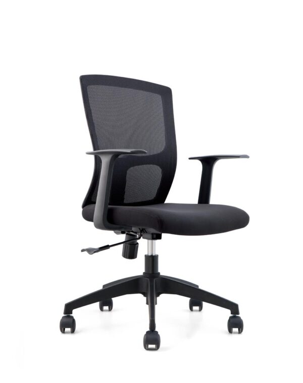 Black PP frame 40 high density foam Simple function mechanism T shape fixed PP armrest 100mm black gaslift 320 nylon base 50mm black casters