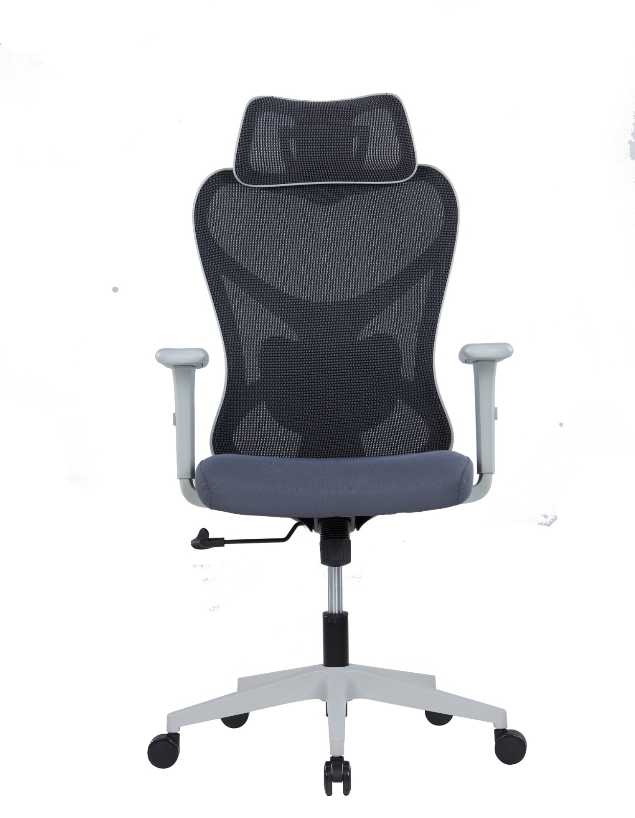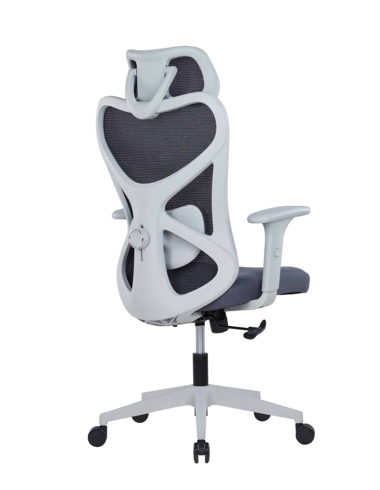 Back: PP grey frame, can be tilted back up to 125°, up and down adjustable lumbar support