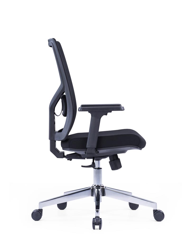 Black glass fiber frame Adjustable lumbar support Adjustable armrest Molded foam 3-position lock mechanism 100#4 chrome gas lift Aluminum base Nylon castors